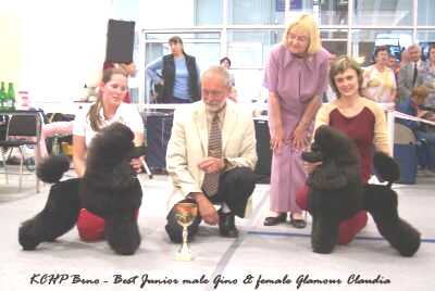 18.9.2005 HOT NEW!!! Judy became at the age two years and three and half months: Judy has met requirements for awarding the title “Interchampion” in only 371 days at 17 CACIB-shows in 6 countries by getting 14 CACIBs from 12 judges! 1. CACIB – Kecskemét (H) – 12.9.2004, judge: Mr. P. Muntean (RO) 5. CACIB – Budapešť (H) – 6.2.2005, judge: Mr. J. Marczé (H) 6. CACIB – Brno (CZ) –13.2.2005, judge: Mrs. N. Klírová (CZ) 7. CACIB – Graz (A) – 6.3.2005, judge: Mrs. S. Radnetter (A) 8. CACIB – Zagreb (HR) – 19.3.2005, judge: Mr. Z. Kupferberg (Israel) 9. CACIB – Zagreb (HR) – 20.3.2005, judge: Mr. P. Muntean (RO) 10. CACIB – Praha (CZ) – 1.5.2005, judge: Mrs. L. De Ridder-Onghena (B) 11. CACIB – Nitra (SK) – 29.5.2005, judge: Mrs. E. Králová (SK) 12. CACIB – Bratislava (SK) – 21.8.2005, judge: Mr. A. Zhuk (BY) 13. CACIB – Kecskemét (H) – 10.9.2005, judge: Mr. L. Pichard (CH) 14. CACIB – Lendava (SLO) – 18.9.2005, judge: Mrs. C. Aradi (H) |